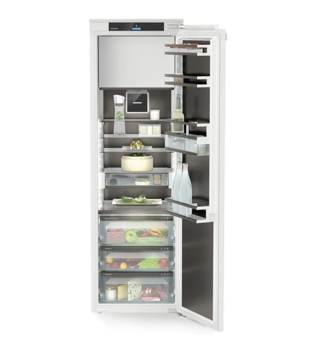 Chłodziarka do zintegrowanej zabudowy Liebherr IRBbsci 5171 łączy w sobie nowoczesną technologię BioFresh Professional, purystyczny design oraz wyjątkową funkcjonalność przechowywania żywności. Urządzenie zapewnia długi okres świeżości produktów dzięki precyzyjnie kontrolowanej temperaturze i wilgotności w strefach BioFresh, w tym funkcji HydroBreeze. Intuicyjna obsługa za pomocą wyświetlacza dotykowego Touch & Swipe oraz ergonomiczne drzwi z funkcją SoftSystem i SoftTelescopic gwarantują komfort użytkowania i łatwy dostęp do wszystkich komór chłodniczych i zamrażalnika.