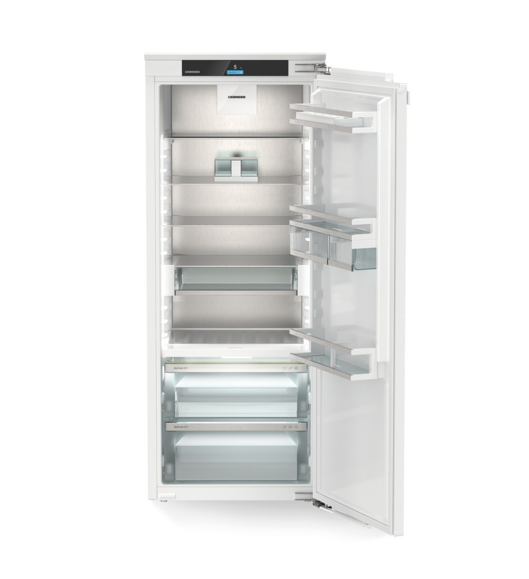 Chłodziarka do zabudowy Liebherr IRBci 4550 Prime BioFresh łączy zaawansowaną technologię przechowywania świeżej żywności BioFresh, precyzyjne sterowanie oraz wysoką kulturę pracy. Urządzenie zostało zaprojektowane do pełnej integracji z zabudową kuchenną i zapewnia stabilne warunki chłodzenia, intuicyjną obsługę oraz funkcjonalne rozwiązania wspierające codzienne użytkowanie.