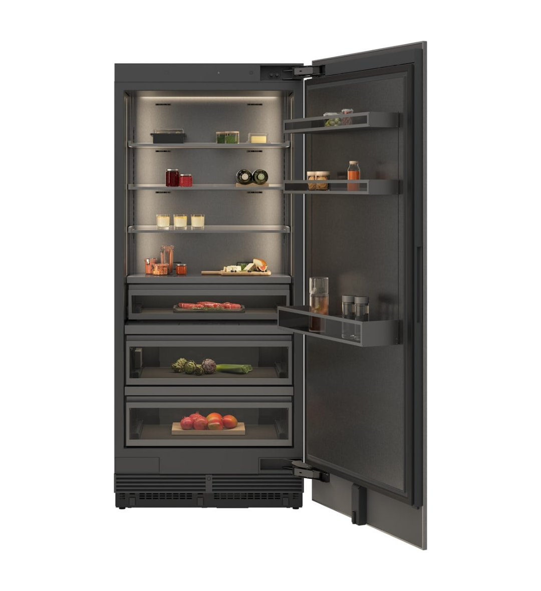 Lodówka Gaggenau RVC497190 to urządzenie klasy premium zaprojektowane z myślą o profesjonalnej jakości przechowywania żywności. Łączy zaawansowaną technologię Vario Cooling, cztery różne strefy klimatyczne oraz wyrafinowane wnętrze wykonane z ciemnej szczotkowanej stali nierdzewnej z elementami z litego aluminium w odcieniu antracytu. Ciepłe, nieoślepiające oświetlenie LED harmonijnie prezentuje zawartość, a pełnotekstowy wyświetlacz TFT zapewnia precyzyjną i intuicyjną obsługę wszystkich funkcji urządzenia. Całkowita pojemność 622 litrów pozwala na komfortowe przechowywanie produktów w zróżnicowanych warunkach temperaturowych.