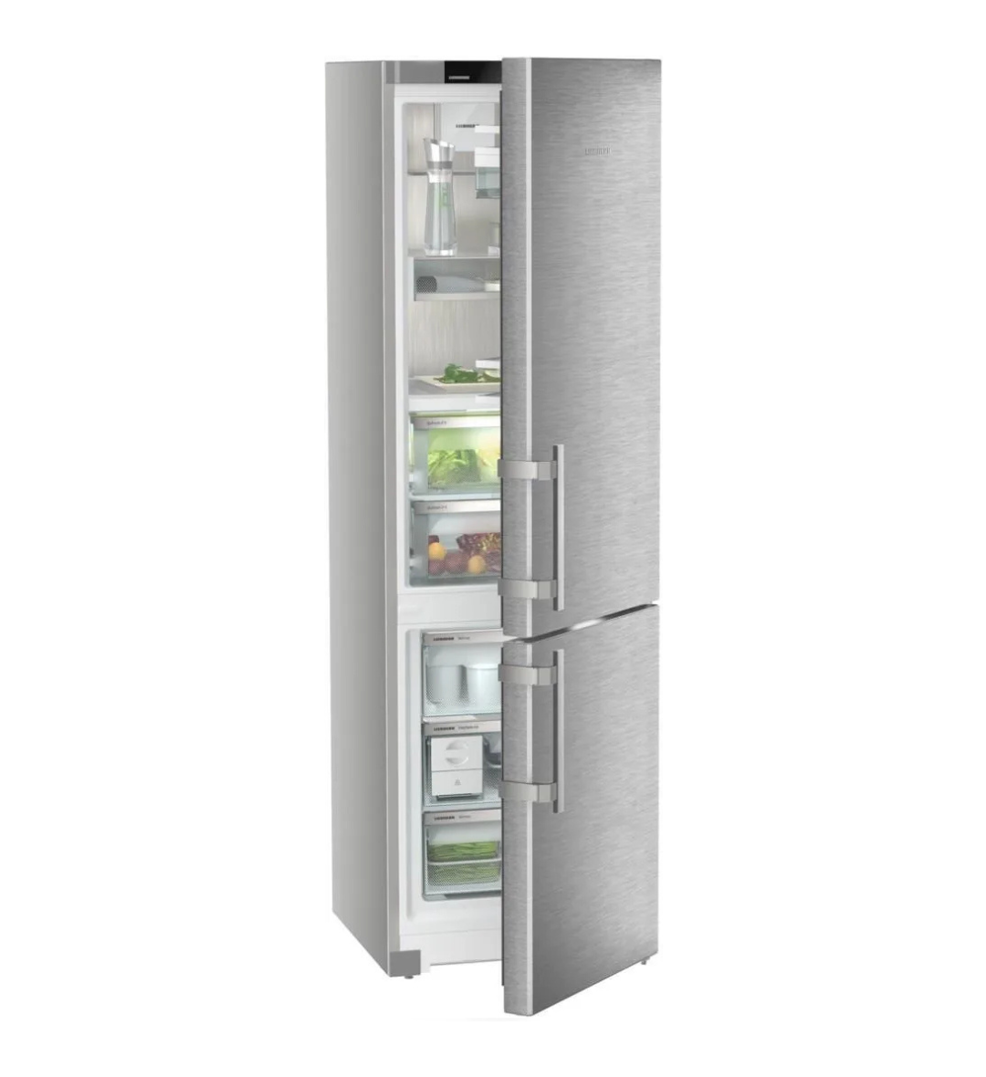Chłodziarko-zamrażarka Liebherr CBNsda 575i łączy technologię BioFresh z oddzielnymi obiegami DuoCooling, systemem NoFrost oraz funkcją VarioTemp. Urządzenie oferuje pojemność całkowitą 362 l, wyświetlacz TFT 2,4″ z funkcją Touch & Swipe oraz zintegrowany moduł SmartDeviceBox. Wykończenie ze stali nierdzewnej ze ścianami bocznymi w kolorze srebrnym oraz elementy SmartSteel podkreślają spójny charakter wzorniczy i funkcjonalny modelu.