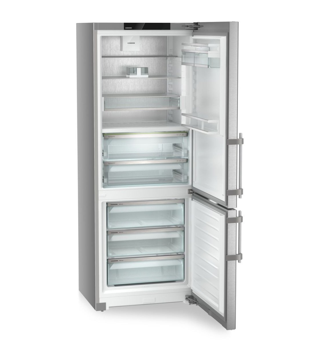 Chłodziarko-zamrażarka Liebherr CBNsda 775i łączy technologię BioFresh, system DuoCooling oraz NoFrost z rozbudowanymi funkcjami zarządzania temperaturą i łącznością SmartDevice. Model o pojemności całkowitej 473 l wyposażony jest w kolorowy wyświetlacz TFT 2,4″ z funkcją Touch & Swipe, zintegrowany moduł SmartDeviceBox oraz system PowerCooling z filtrem FreshAir. Wykończenie ze stali nierdzewnej z elementami SmartSteel podkreśla spójny charakter urządzenia.